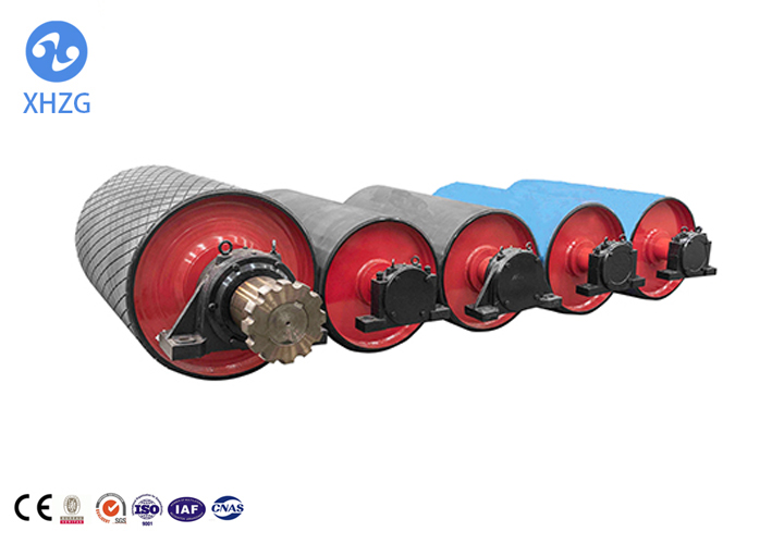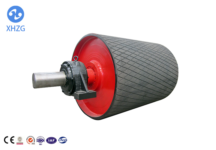 包膠滾筒是皮帶輸送運(yùn)輸系統(tǒng)中重要部件和組成部分。滾筒的包膠能有效改善輸送系統(tǒng)的運(yùn)行狀況,保護(hù)金屬滾筒不被磨損,防止輸送帶的打滑,使?jié)L筒與皮帶同步運(yùn)轉(zhuǎn),從而保證皮帶高效的、大運(yùn)量的運(yùn)轉(zhuǎn)。滾筒的包膠還能有效地防止?jié)L筒與皮帶之間的滑動(dòng)摩擦,減少滾筒表面的物料粘結(jié),從而減小皮帶的跑偏和磨損。廣泛用于:鋼鐵、冶金、煤炭、水泥、發(fā)電、化肥、糧庫(kù)、港口等行業(yè)。